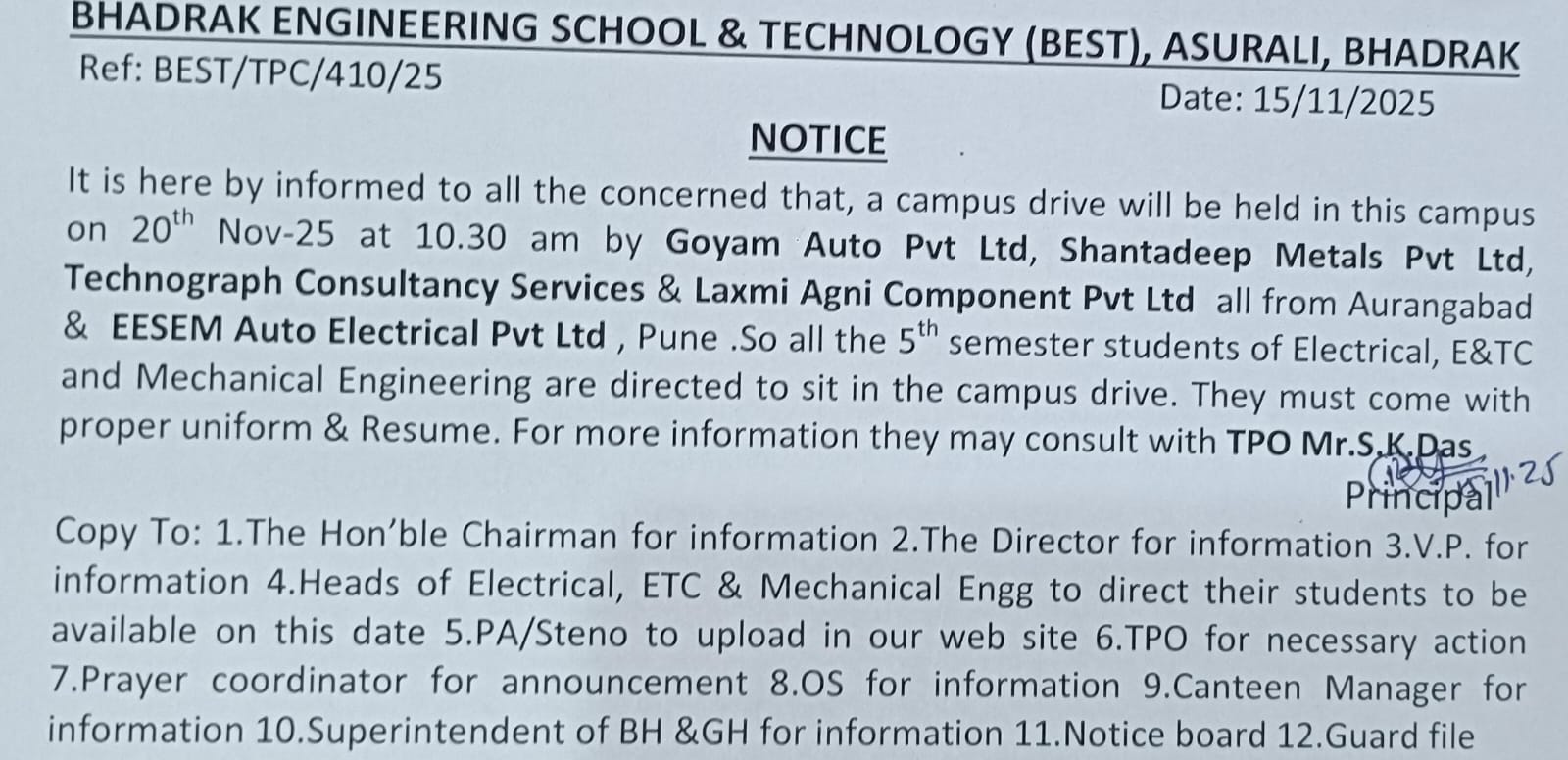 Campus Drive will be held in this campus on 20th Nov-25 ||