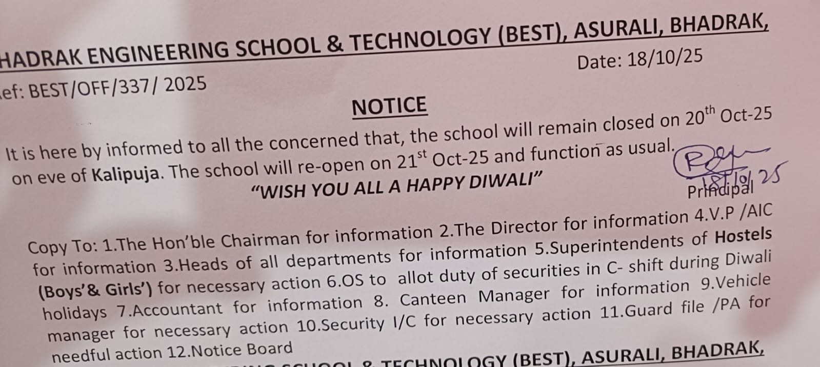 The School will remain closed on eve of Kalipuja on 20th Oct-25 ||