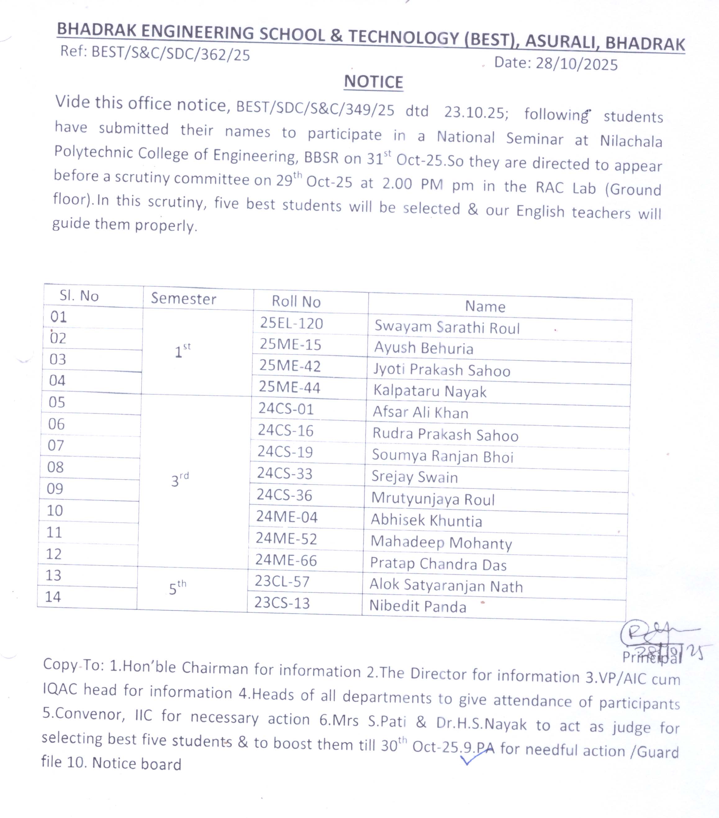 | 1 | 09.11.2024 | Mr. Biplab Kumar Das | Mr. Biswajit Moharana | Offline | ![]() |