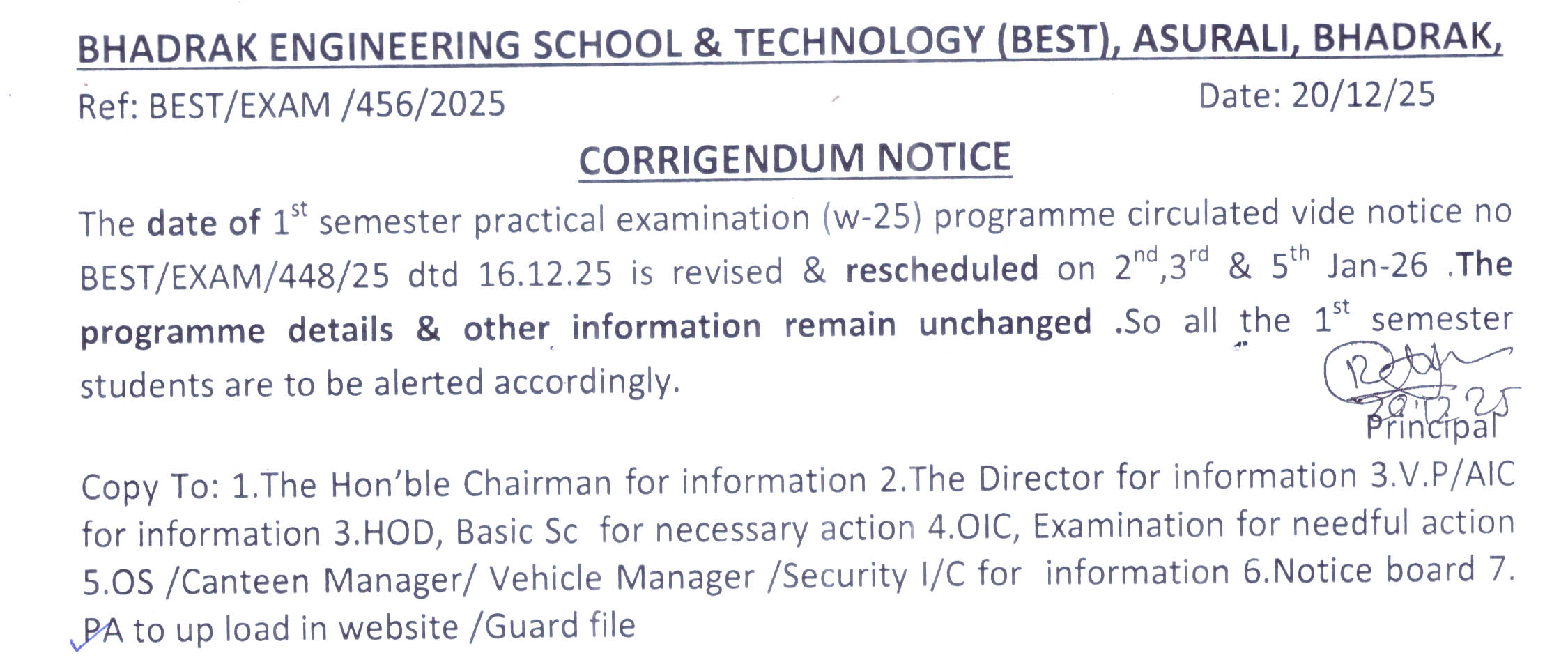 | 1st Semester Practical Examination W-25 rescheduled | 22-12-2025 | Download |