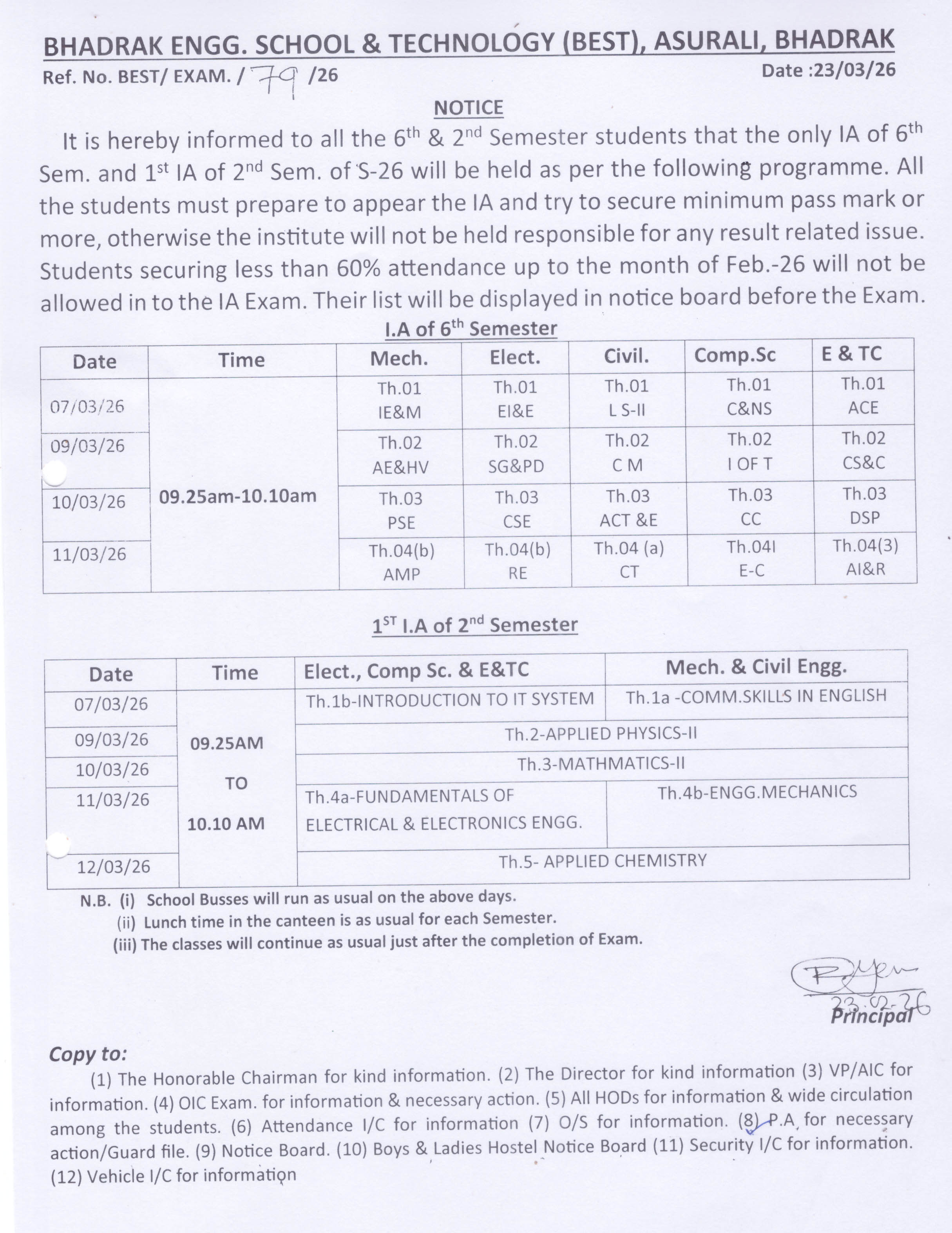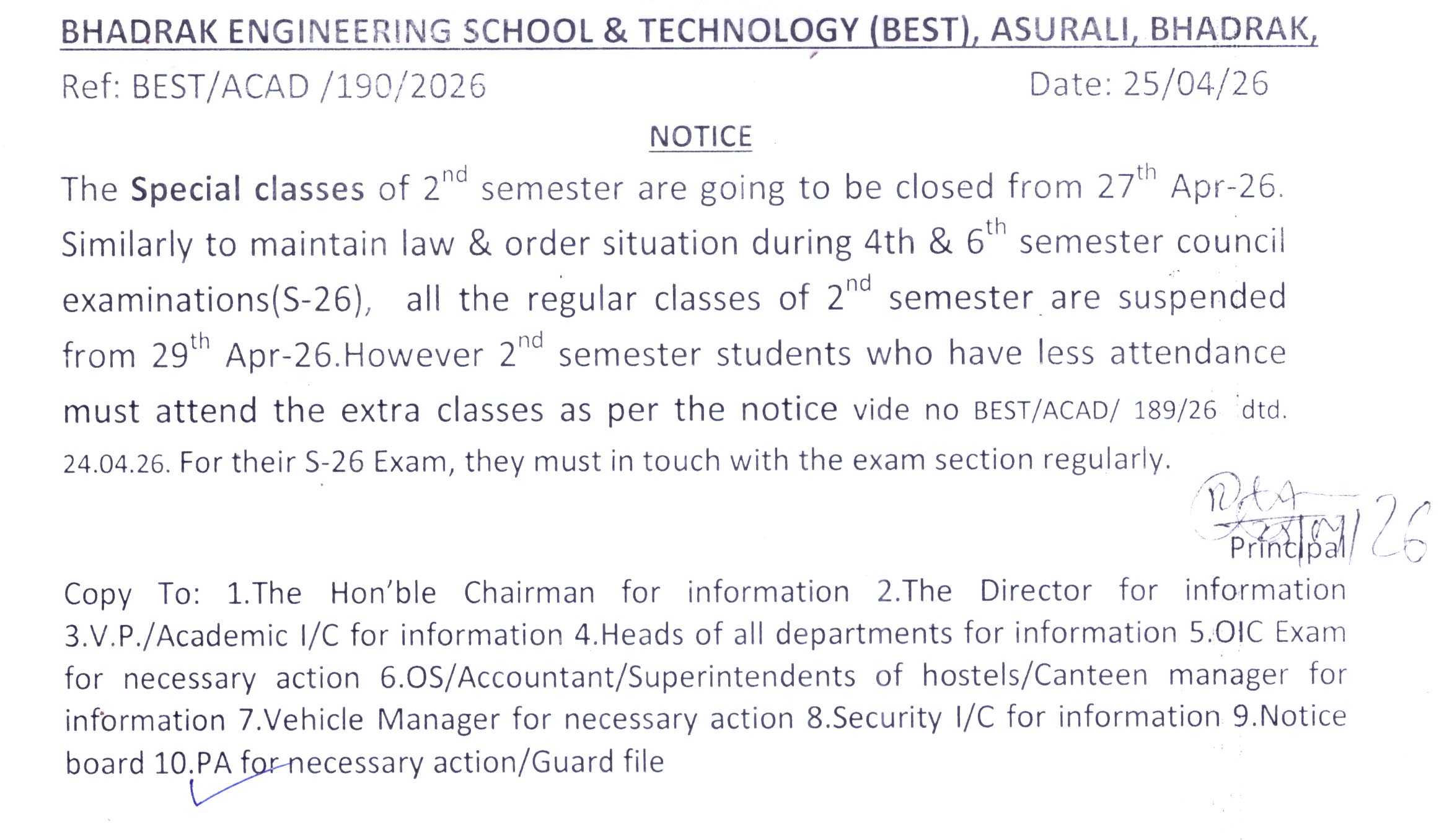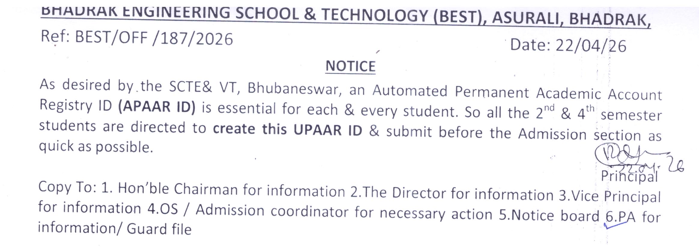 To strive towards higher levels of excellence and to make BEST a premier technical education. To serve the Business, Industry and Community by developing a new stream of Engineers in whom technical competency and moral strength fused together.