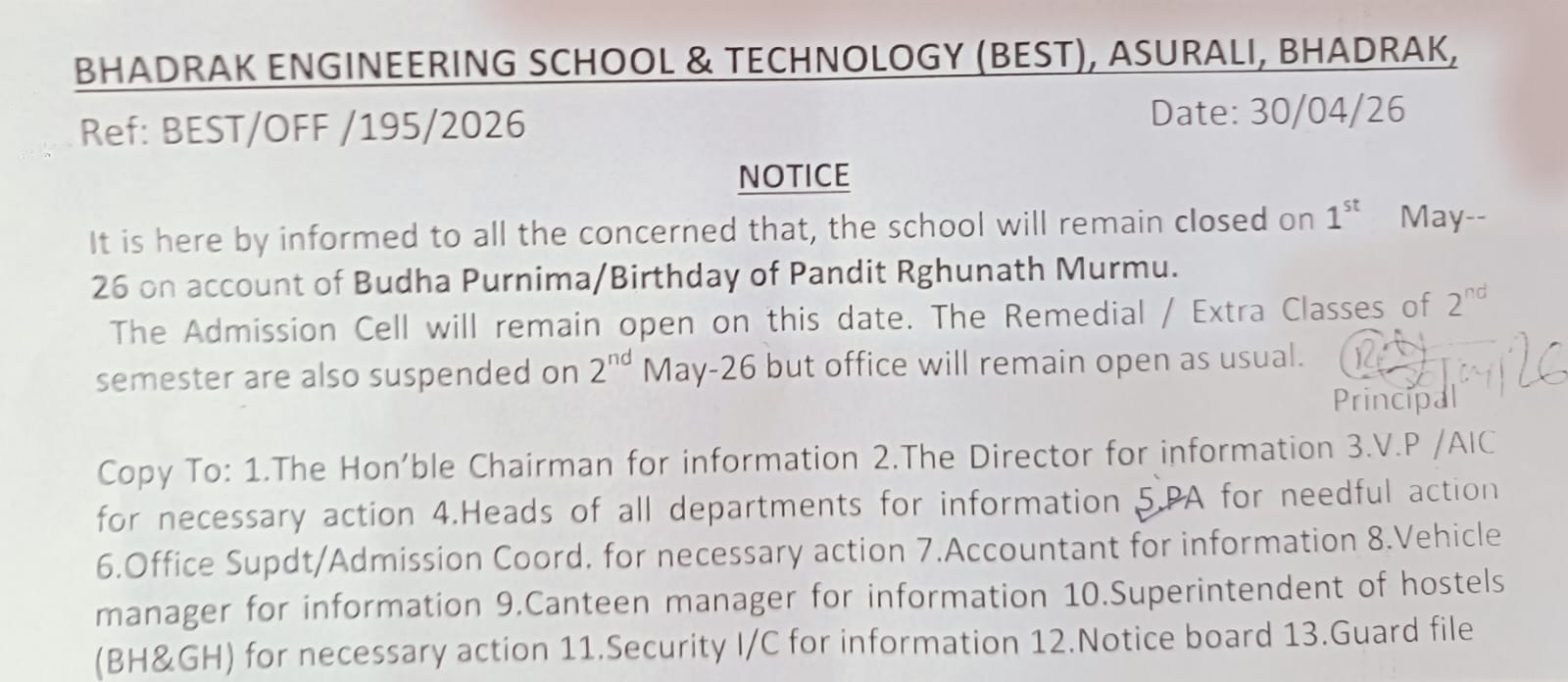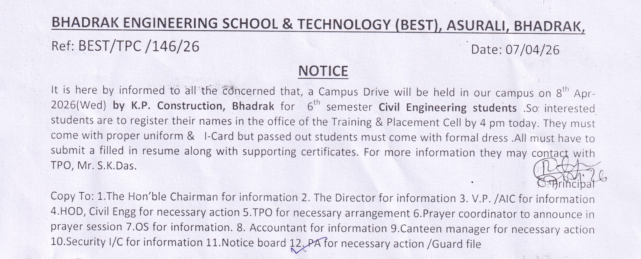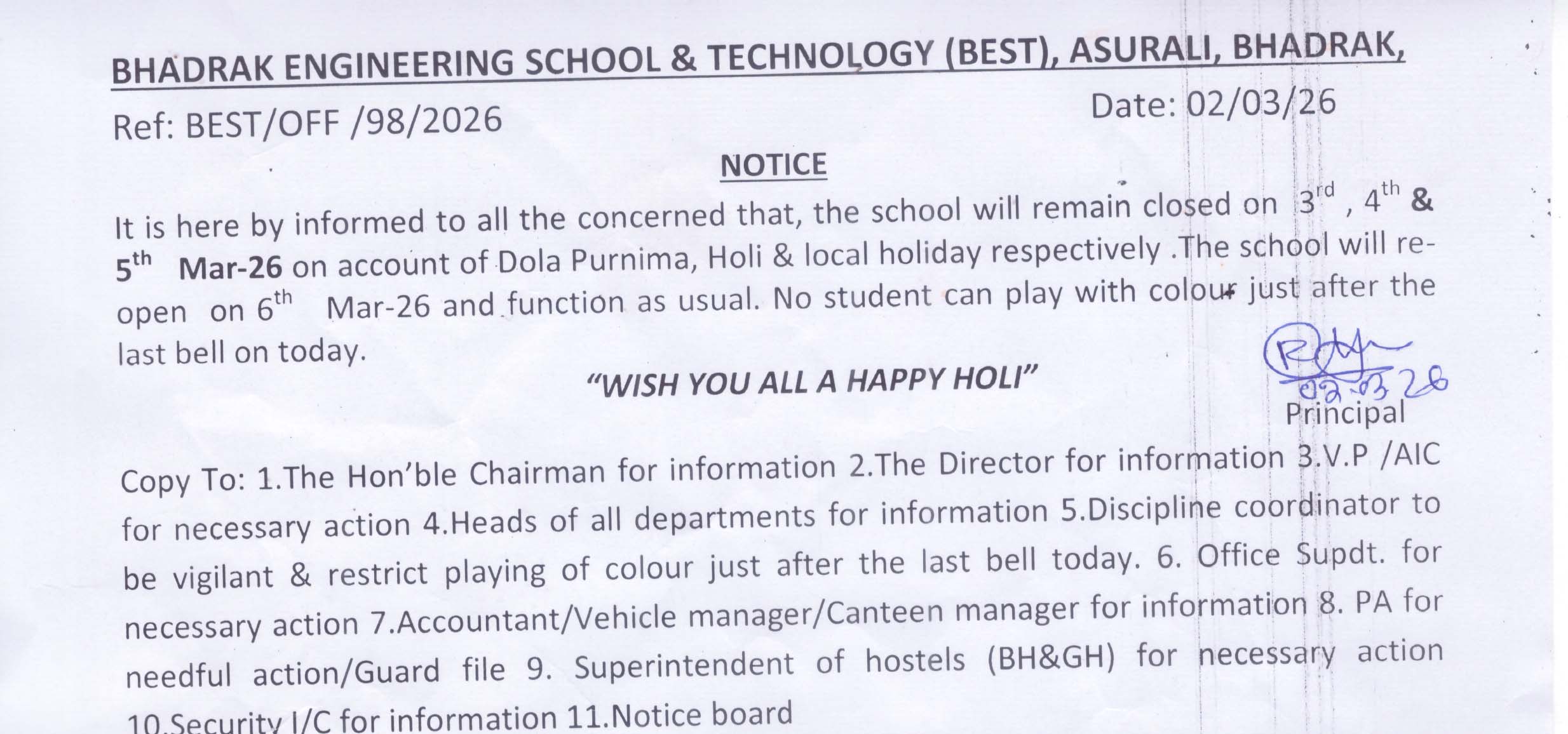 FMECT (Fakir Mohan Educational & Charitable Trust) has been established in 1999 and is actively engaged in various activities to promote techno-education in the North Western belt of Orissa. Bhadrak Engineering School & Technology saw light in the year 2009 at Asurali, Bhadrak. BEST has been spread throughout a vast 5acres of lush green noise and pollution free environment. It has around 65,000sq.ft. built up area with well equipped laboratories, workshops, classrooms, office, library and computer center. One Degree Engineering College offers B.Tech. MBA & MCA at Balasore, two more Industrial Training Centres, one at Dhamnagar, and another at Balasore are also managed successfully by this Trust.