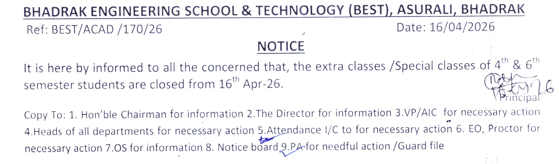 Attendance the month of Mar-26 has been displayed in the notice board ||